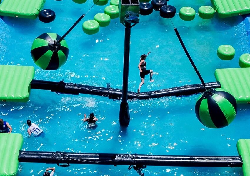 Aquí disfrutarás de las pruebas más divertidas: lucha de gladiadores, eliminador giratorio, toboganes acuáticos, fútbol diana, pista americana, rodeo hinchable y muchas más. Cada reto pondrá a prueba tu equilibrio, agilidad y espíritu competitivo, garantizando carcajadas desde el primer minuto.