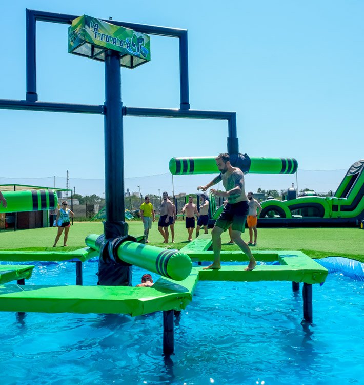El reto es llegar al otro lado sin caer al agua… aunque las caídas y las carcajadas están garantizadas. Perfecto para grupos, despedidas, cumpleaños o team building con ganas de acción y diversión.
