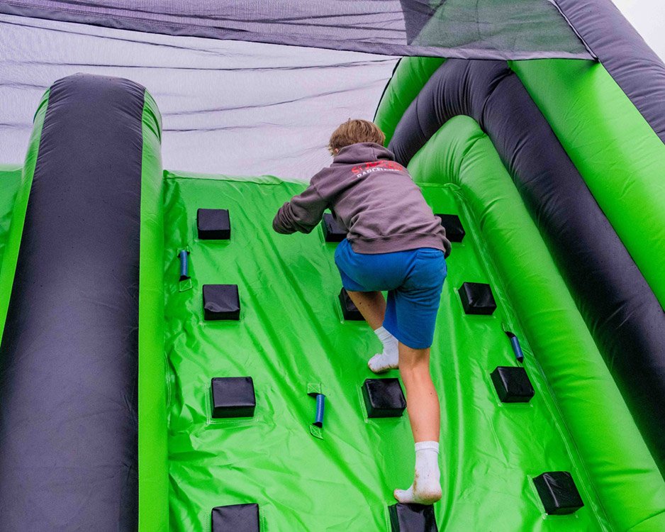 Corre, salta y esquiva obstáculos en nuestra pista hinchable de 16 metros.